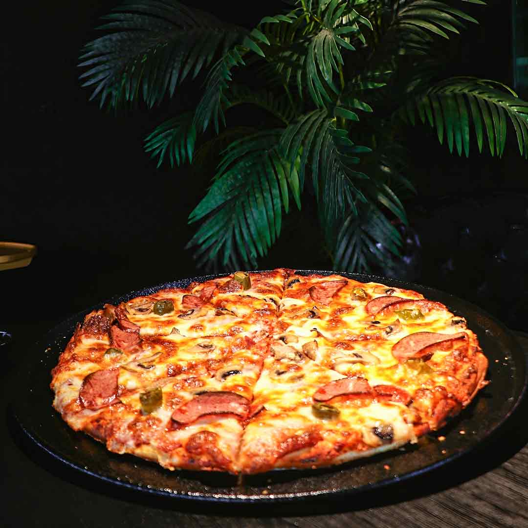خمیر ایتالیایی _سس ناپولتین _ژامبون گوشت 90% _پنیر موزارلا _فلفل هالوپینو