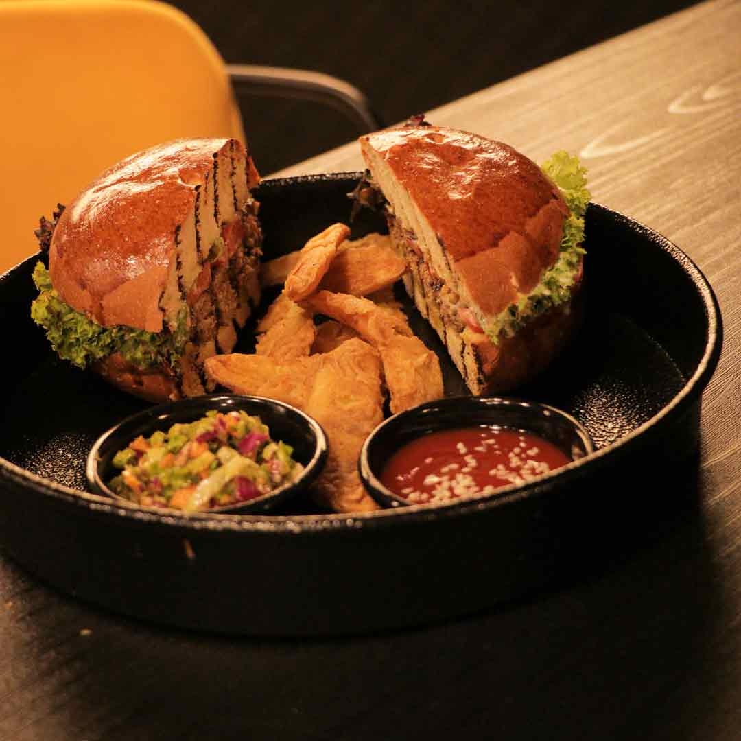 170 گرم سینه مرغ طعمدار شده _کاهو باتاویا _گوجهفرنگی _پنیر گودا_نان گنجدی__خیارشور _سس پستو