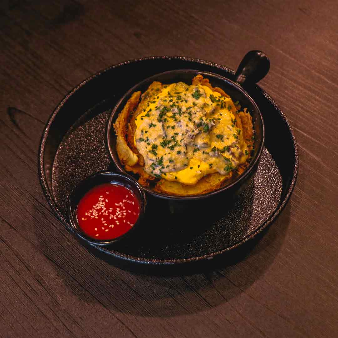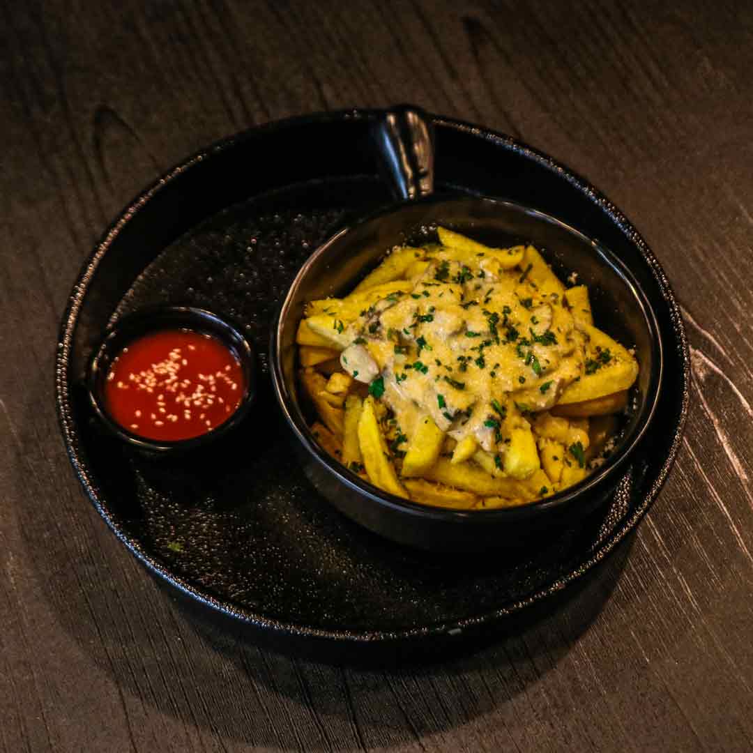 سیبزمینی سوخاری _پنیر دیپ _سس قارچ میکس