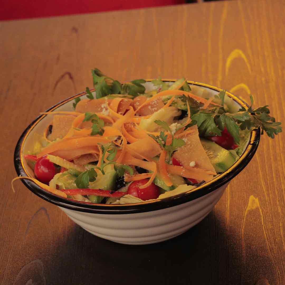 ترکیبی از کاهوهای فصل _خیار _هویج _زیتون _گوجهگیلاسی _فلفل دلمه _سس ایتالیایی