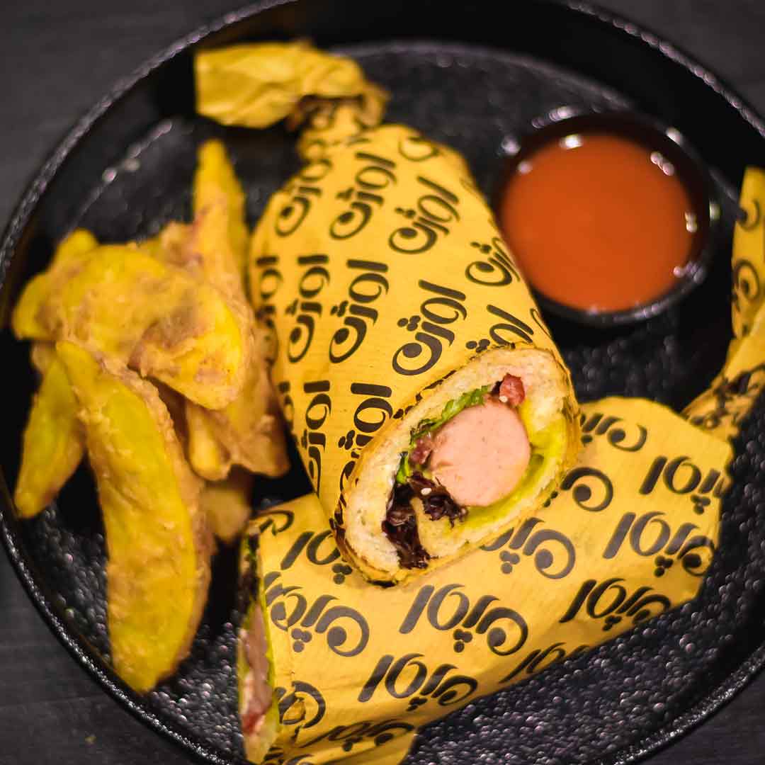 هات داگ90% _گوجهفرنگی _خیارشور_نان کنجدی_سس تربچه وپیازچه