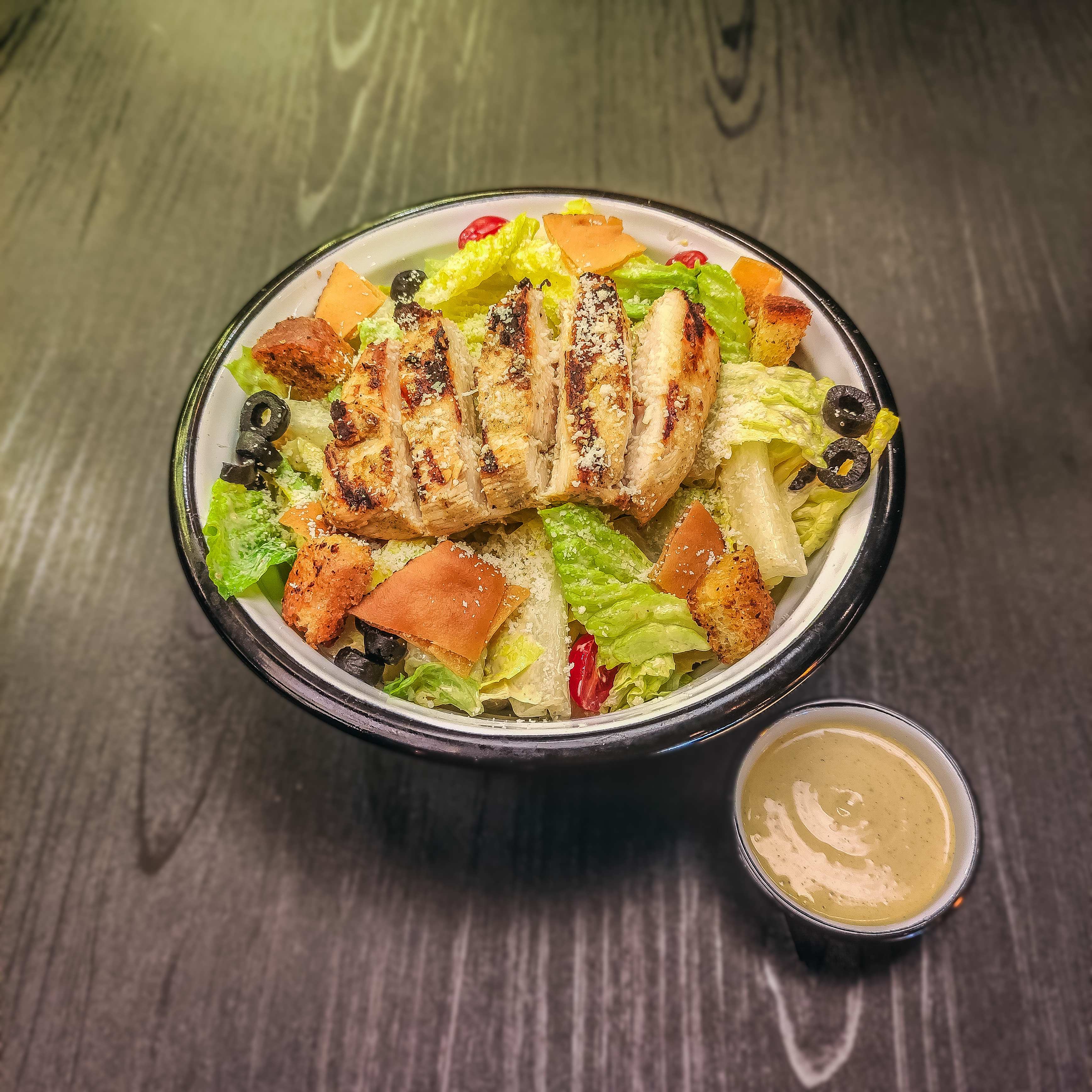 150 گرم مرغ _کاهو رسمی _سس سزار _نان کروتان
