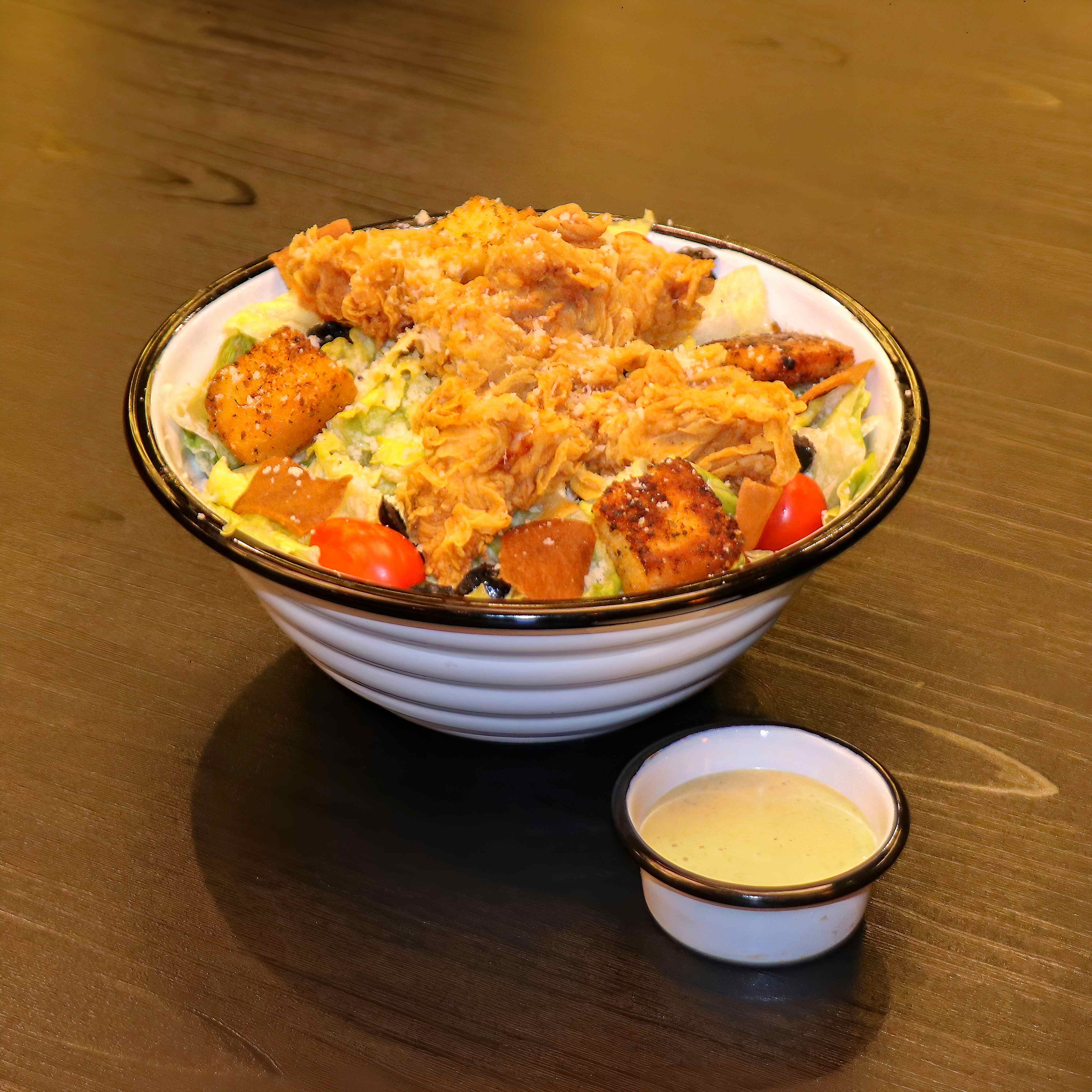 سینه مرغ سوخاری _سس سزار _کاهو رسمی _نان کروتان