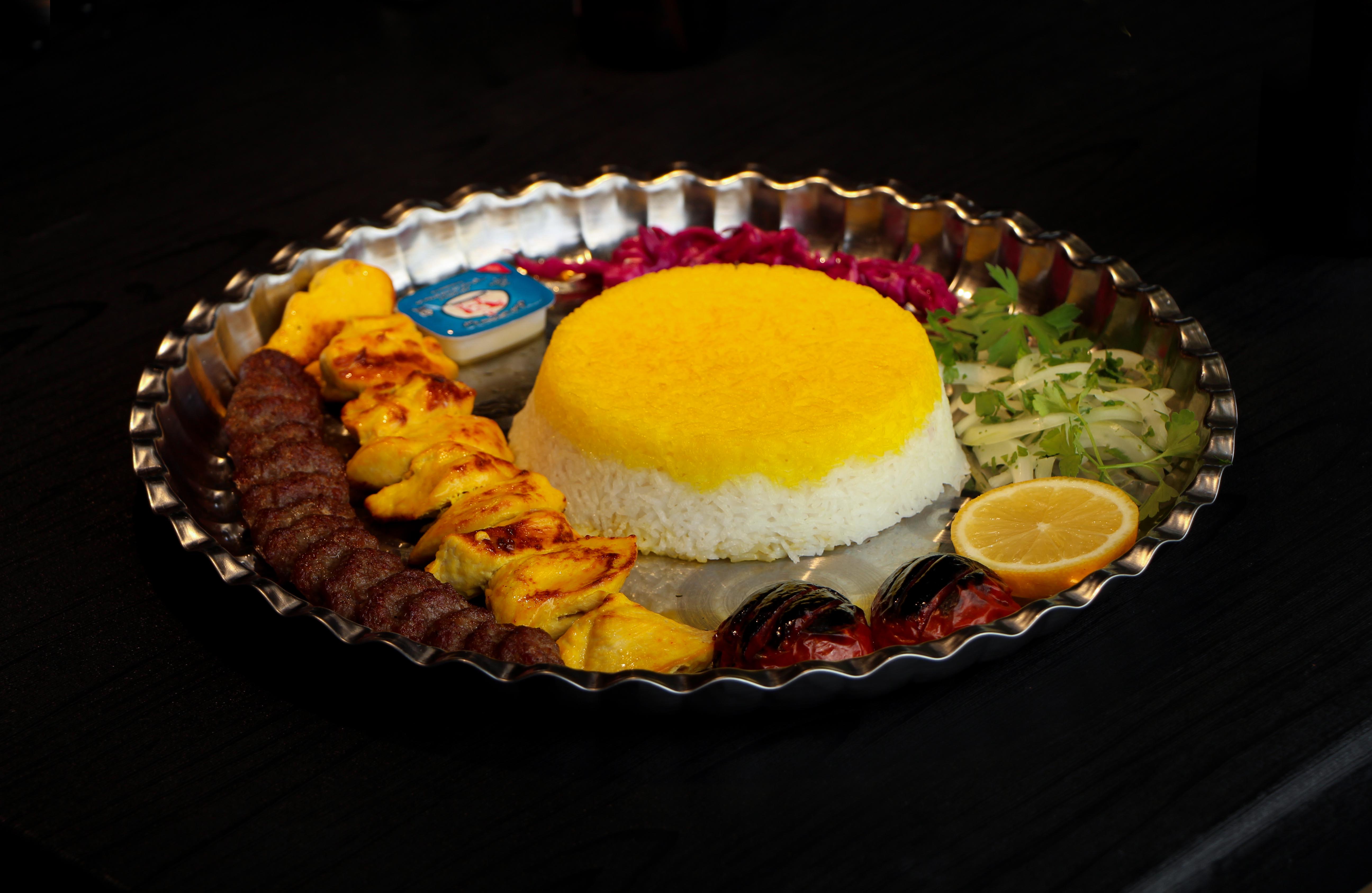 140گرم گوشت کوبیده گوساله/110گرم راسته گوساله/110گرم سینه مرع کبابی با سس مخصوص